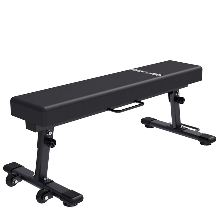 Flad Træningsbænk Sammenklappelig Med Hjul fra Gorilla Sports er den perfekte løsning til hjemmetræning. Denne fladbænk kombinerer maksimal ydeevne med minimal plads.